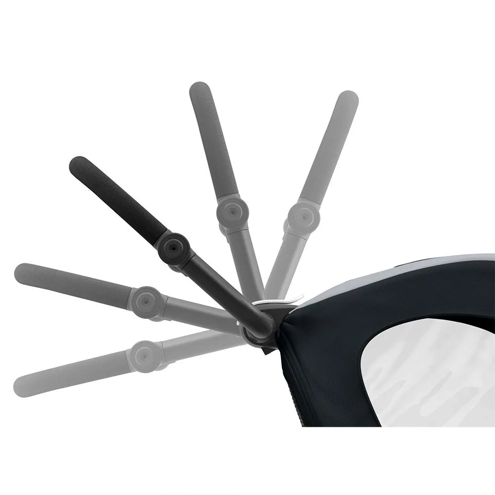 – Onboard storage of the bicycle drawbar and swivel wheels makes it quick and easy to switch between trailer and stroller modes.
