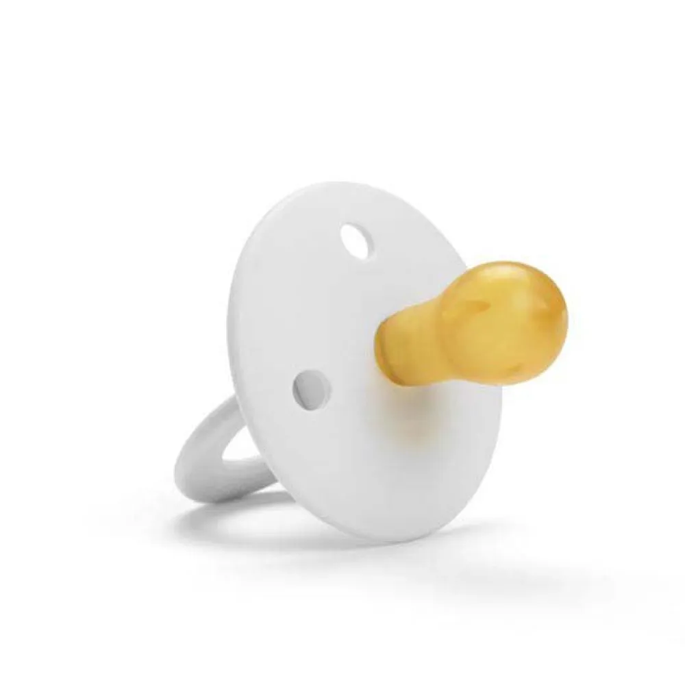 The Binky Bundle is a duo-pack of pacifiers with round teats in either latex or silicone, available in both newborn and +3 month sizes. The muted colour shades and the knob-ring design give them a retro-inspired look that is easy to fall in love with. The shield is slightly curved outwards and equipped with three ventilation holes to allow air circulation. All designed to protect the sensitive skin around your baby’s mouth from irritation. Completely free from harmful substances such as BPA, phthalates, and PVC. They are tested and approved according to the European safety standard EN-1400. Easy to clean and sterilize in boiling water. Full instructions on how to use are included. All pacifiers have a matching pacifier clip available in Elodie’s range, perfect to complete the look and make sure the dummy is always kept clean and within reach.