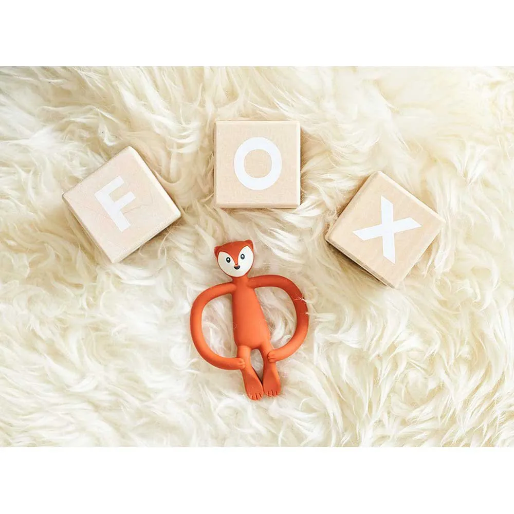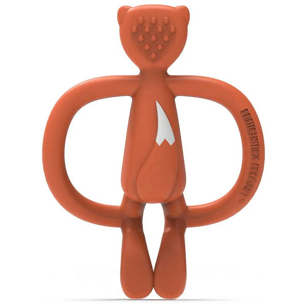 – Fudge Fox is a fun, soft textured silicone teether providing soothing relief to aching gums