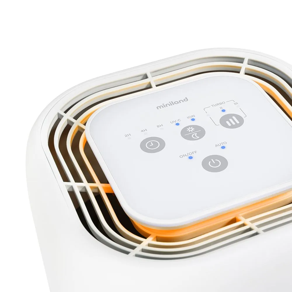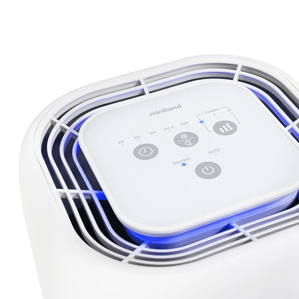 The most advanced purifier for in-depth air cleaning through 5 filtering stages: pre-filter, HEPA filter, activated carbon filter, UV rays filter and ion emission.