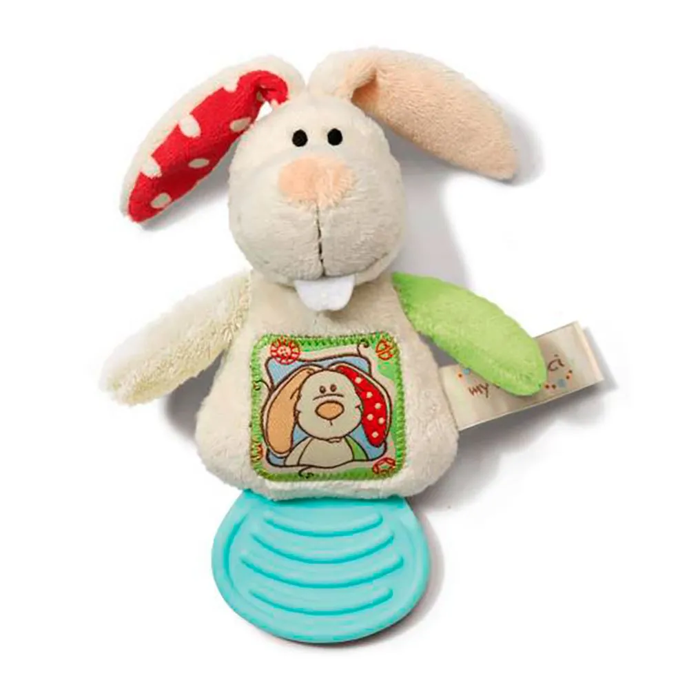 From birth, children playfully discover the world, using all their senses. My First NICI is specifically geared to the needs and requirements of every stage of baby’s development and can support these first steps in learning by stimulating the senses with selected toys, supporting the synapse formation in the brain. The lovingly designed cuddly toys and educational toys are made of high-quality plush and developed by experienced designers who are parents themselves. NICI sets great value upon excellent product quality and the latest safety standards. This is why each product is thoroughly tested and certified by an independent testing institute. With the teething ring of bunny Tilli, a new citizen of the earth not only receives an incomparably sweet cuddly toy in the widely popular NICI look. Tilli is equally helpful for the development of the little ones: The blue teething surface is specially designed to train oral motor skills.