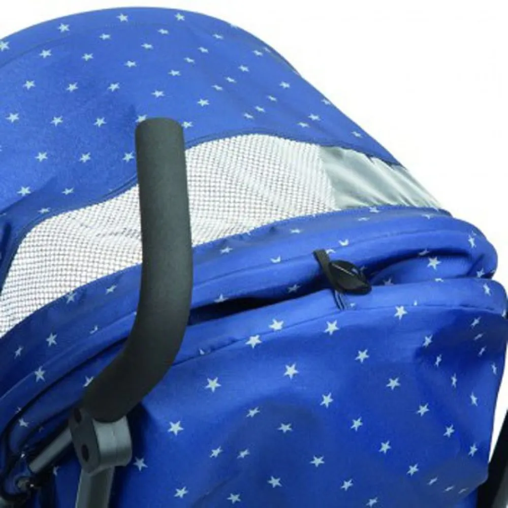 Funky is equipped with a 5 position backrest, interior padding, and adjustable footrest and removable armrest with reflective material, which makes it extremely comfortable.